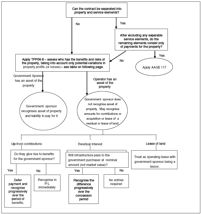 Once any separable service elements have been excluded, PPPs can be classed into those where the only remaining elements are payments for the property and those where the remaining elements include some services.  Where the only remaining elements are payments by the grantor for the property asset, the PPP should be accounted for as a lease in accordance with AASB 117 Leases.  Where the remaining elements include some payments for services, the PPP should be accounted for in accordance with this guidance.