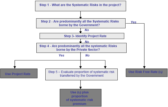 The following pages take practitioners through each step of the Methodology to demonstrate how it should be applied in practice and will also discuss the critical issue(s) that will need to be considered before proceeding to the next step. While the question of the specific allocation of Systematic Risk within the PPP arrangement is not dealt with until Step 5, it is possible to expedite the process where it is clear that predominantly all Systematic Risk is with the Public Sector. This is considered in Step 2.