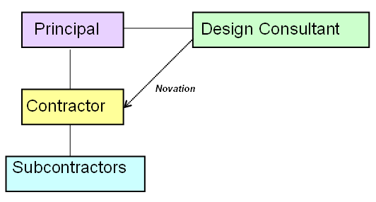 This model ensures the continuity of the designer's input from project inception to completion. By novation of the client-designer contract to the D&C contractor, the client's designer is taken on by the D&C contractor at the time of construction contract award. At this stage, either the schematic design or design development is completed. The contractor takes on full responsibility for the design including payment of the designer's fees.