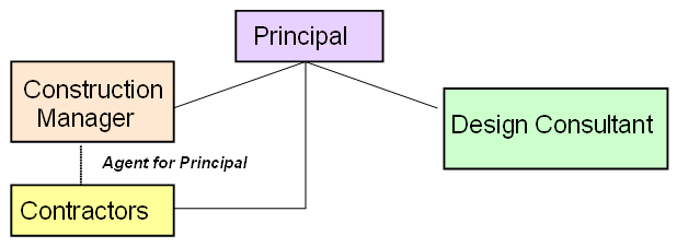 The following figure illustrates the contractual relationships involved in a typical construction management arrangement -