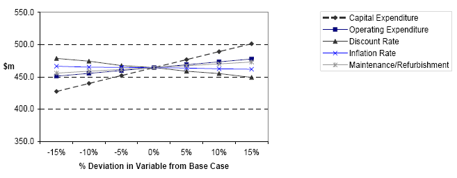 Note: The slight fluctuations in the discount rate and inflation rate variables are due to the need to re-run the @Risk simulations for each change in the variables to estimate the transferable and retained risk.