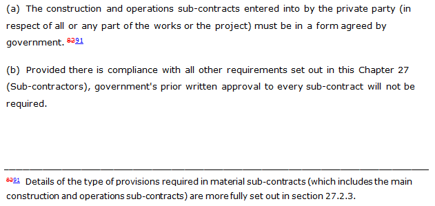 27.1.2 Construction and operations sub-contracts to be in agreed form